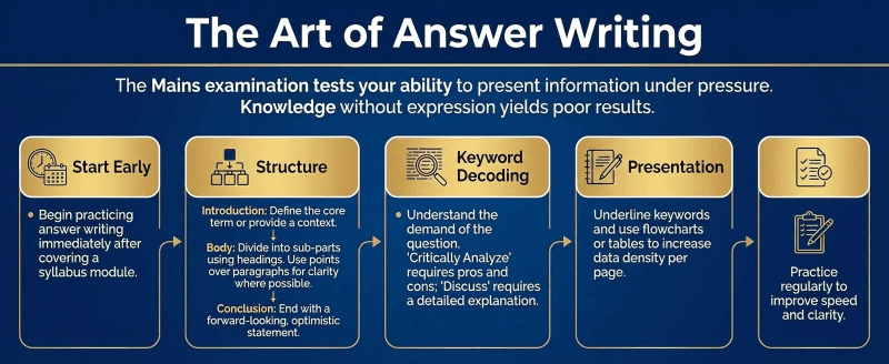 Start Early: Begin practicing answer writing immediately after covering a syllabus module.
