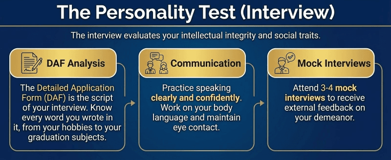 Personality Test (Interview): The final stage assesses your communication skills, leadership qualities, and mental alertness.