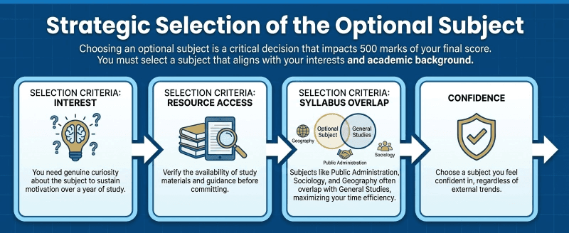 Choosing an optional subject is a critical decision that impacts 500 marks of your final score. You must select a subject that aligns with your interests and academic background.