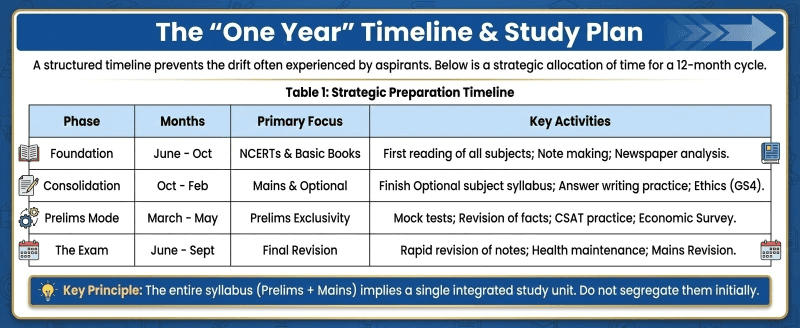 A structured timeline prevents the drift often experienced by aspirants. Below is a strategic allocation of time for a 12-month cycle.