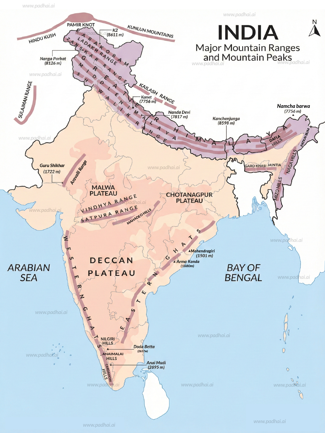 Major Mountain Ranges in India Map: PDF & Image Download